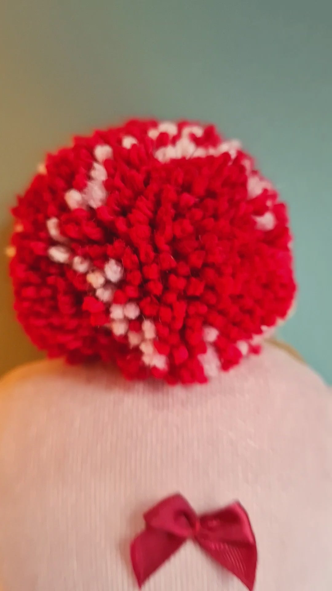 Χειροποίητο βελουτέ δεντράκι σε απαλό ροζ χρώμα με κόκκινα φιογκάκια ραμμένα στο χέρι. Στην κορυφή υπάρχει ένα χαριτωμένο μάλλινο πομ πομ φτιαγμένο με αγάπη και φροντίδα.